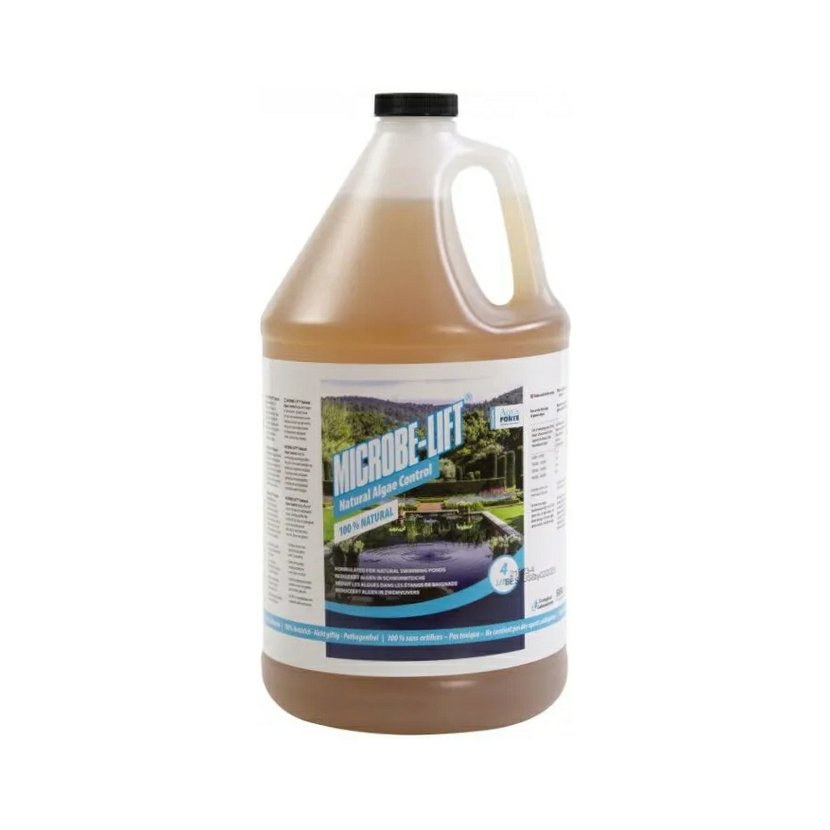 Microbe-lift natural Algae control 4 l jsou bakterie potlačující hlavně růst dlouhých řas. Obsahují vysoce koncetrované výtažky z ječné slámy, které na sebe váží a spotŕebovávají veškeré potřebné látky pro růst řas. Je speciálně vyroben pro koupací okrasná jezírka.