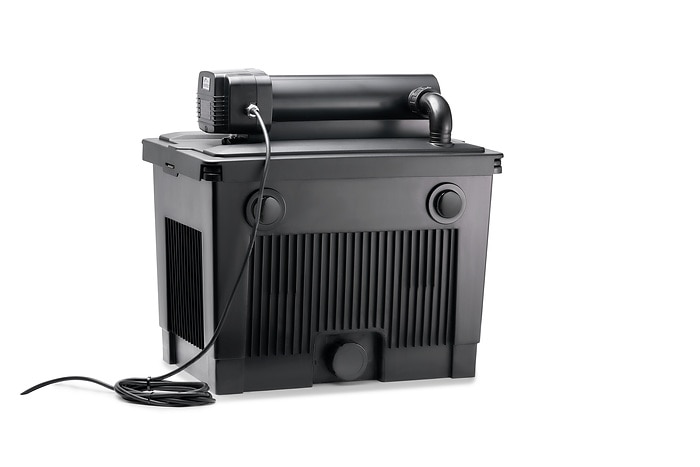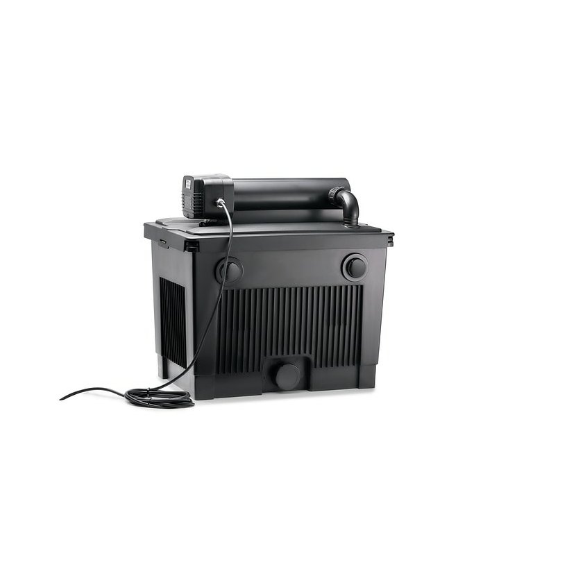 Kompaktní průtočná filtrační sada zaručuje průzračnou, zdravou a čistou vodu v jezírkách do 20 000 litrů bez ryb. Integrovaný UVC předčistič (18 W) účinně odstraňuje plovoucí řasy a kal. V kombinaci s průtokovým filtrem s několika filtračními médii nabízí sada záruku čisté vody. Díky podlahovému odtoku je údržba filtru jednoduchá a snadná.