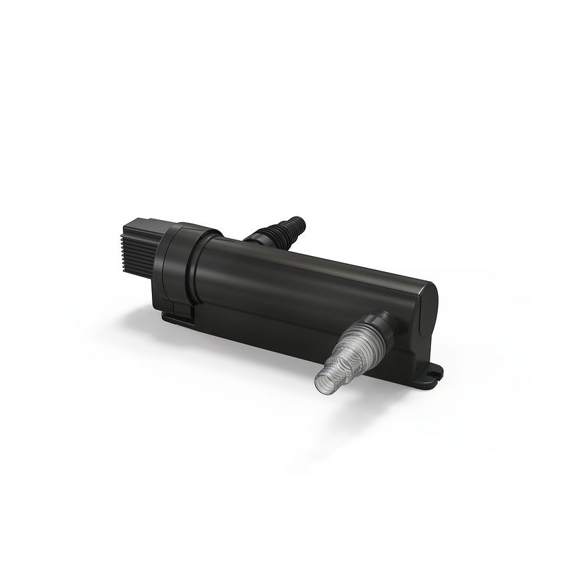 Předčistič Pontec UVC PondoTronic UVC 7. Výkon 7wattové UVC lampy, která je vhodná pro jezírka o objemu až 7 000 litrů (bez ryb), eliminuje zelené plovoucí řasy a redukuje škodlivé zárodky a bakterie. Výsledkem je čistá voda. Předčistič jednoduše připojte mezi jezírkové čerpadlo a jezírkový filtr. PondoTronic lze použít univerzálně s mnoha modely jezírkových filtrů. Zařízení je vybaveno optickou kontrolou funkce pro kontrolu světelného zdroje. Pro silnější požadavky na UVC zvolte předčistič UVC Pontec PondoTronic UVC 11.