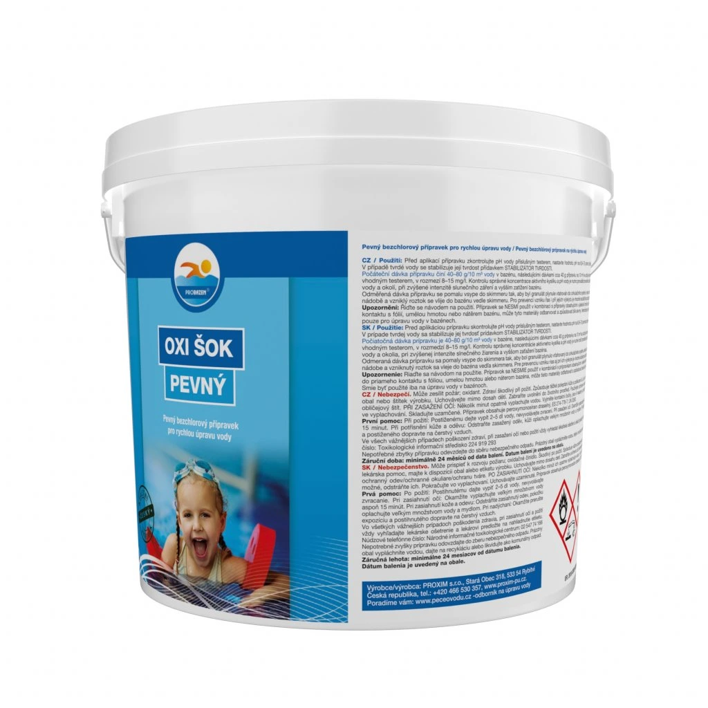 Pevný bezchlórový přípravek pro úpravu vody v bazénech.