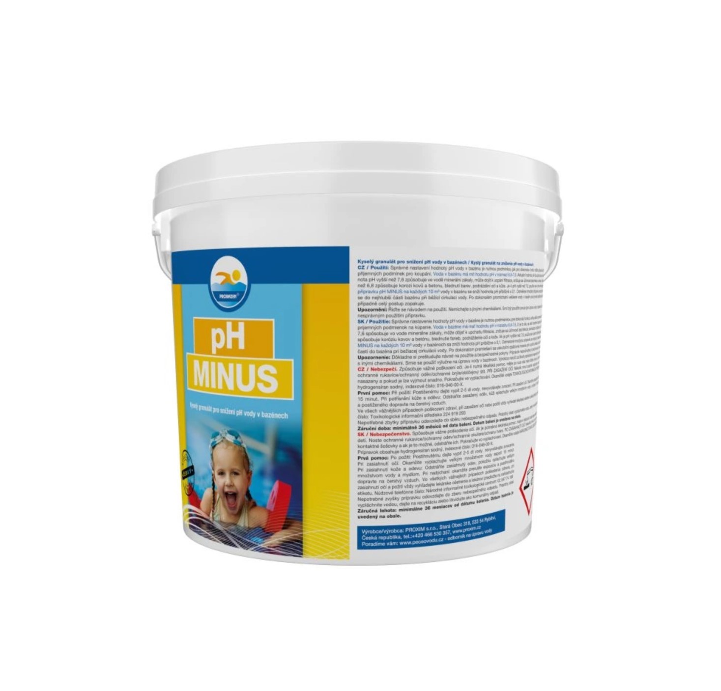 Správné nastavení hodnoty pH vody v bazénu je nutnou podmínkou jak pro dokonalou funkci většiny přípravků řady PROBAZEN®, tak pro vytvoření příjemných podmínek pro koupání. Voda v bazénu má mít hodnotu pH v rozmezí 6,8-7,6. Aktuální hodnotu pH lze zjistit pomocí vhodného bazénového testeru. Hodnota pH vyšší než 7,6 způsobuje ve vodě minerální zákaly, může dojít k ucpání filtrace, snižuje se účinnost dezinfekce, dochází k dráždění očí a kůže. Hodnota pH nižší než 6,8 způsobuje korozi kovů a betonu, blednutí barev, podráždění očí a kůže. Je-li pH vyšší než 7,6, používá se k jeho snížení přípravek pH MINUS.