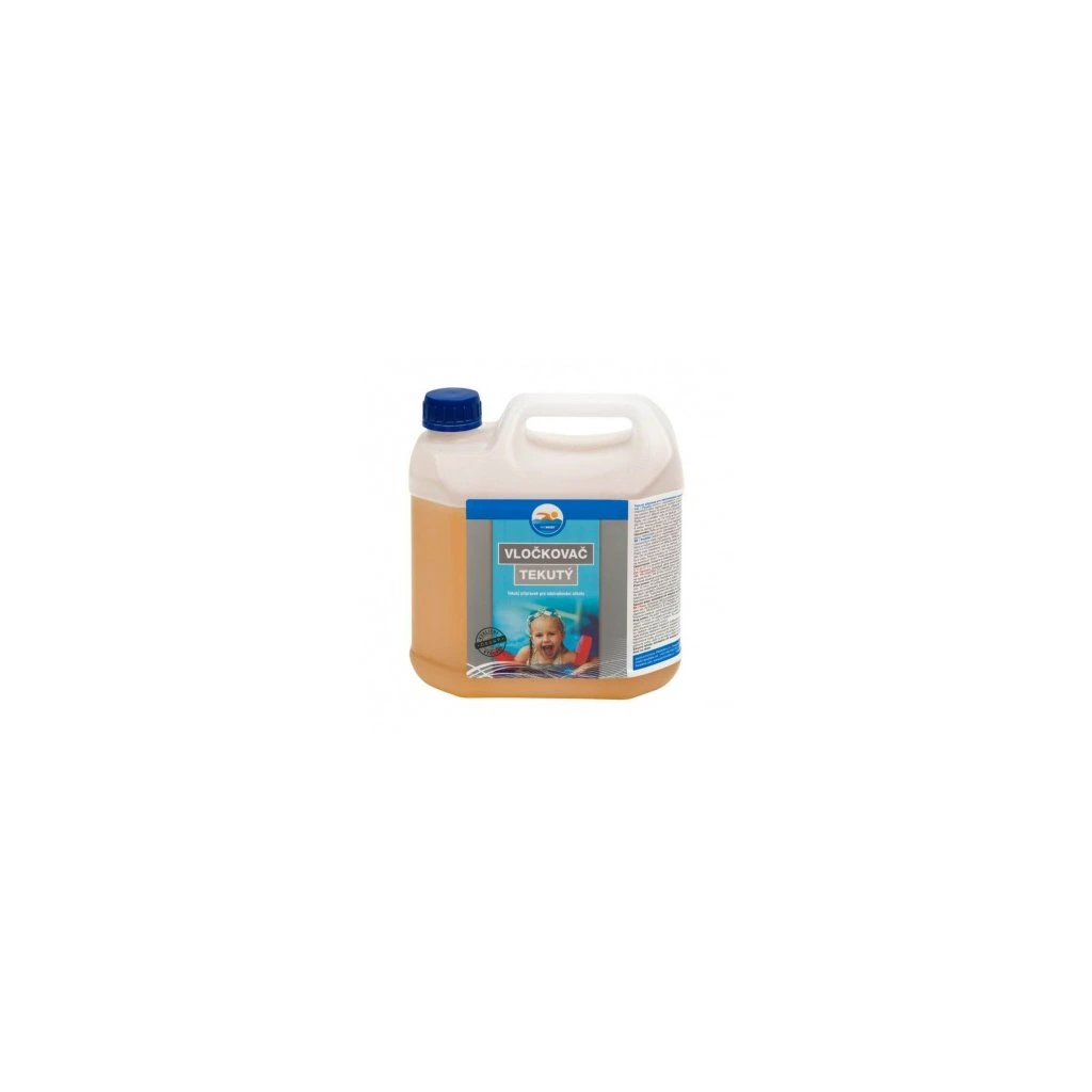 Tekutý flokulační přípravek pro vyvločkování nečistot při zakalení vody.